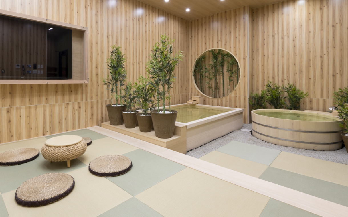 日本エリアに新たにできた茶の湯(さのゆ)エリアは、日本の和をモダンテイストで表現した空間となっております。