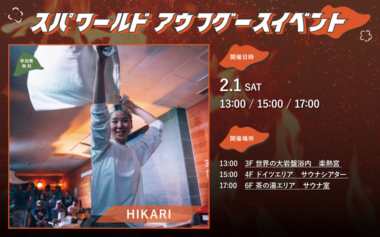あつ~いイベントとともに、ぜひスパワールドのサウナをどうぞお楽しみください♪