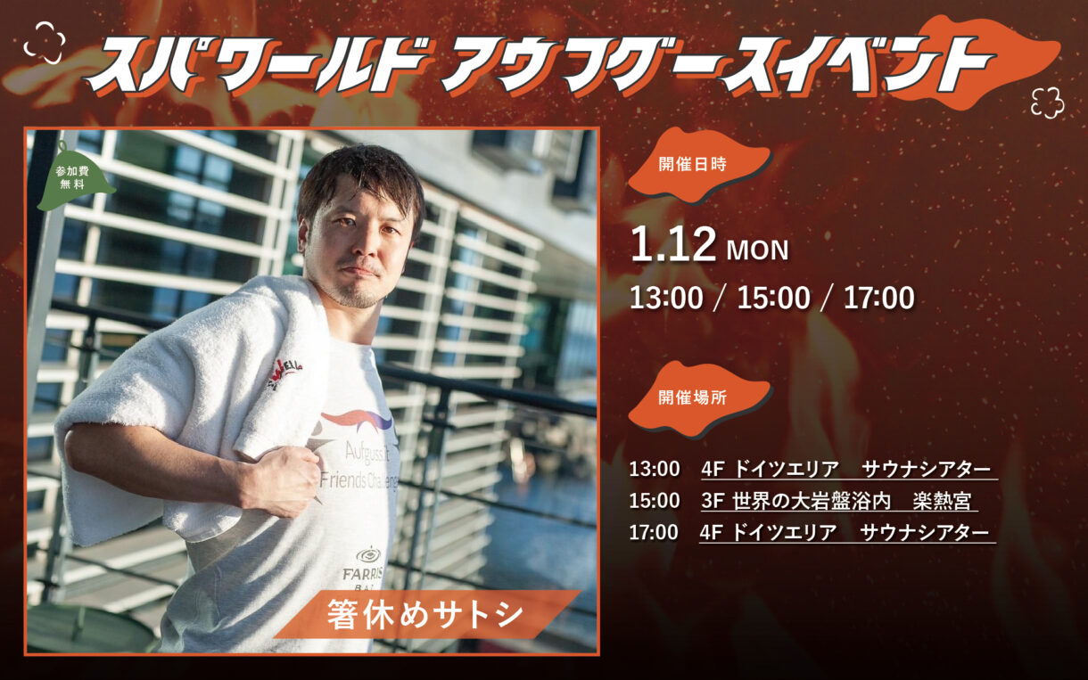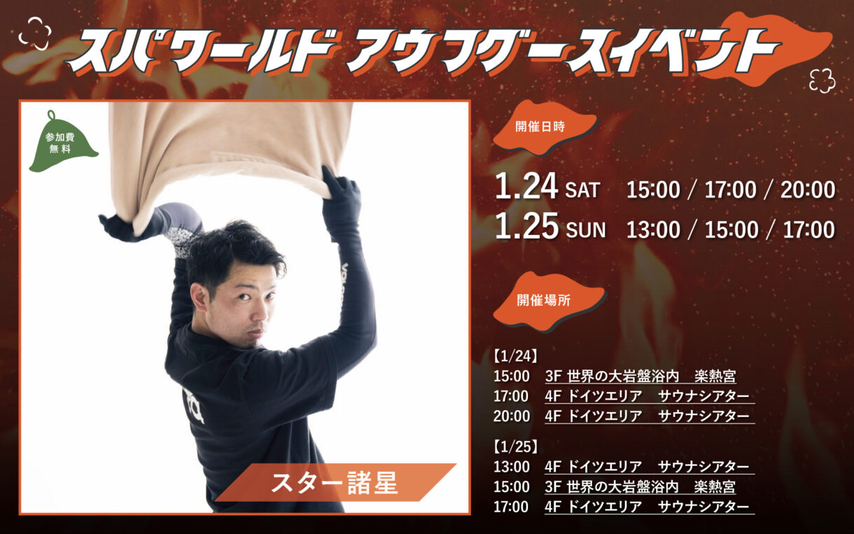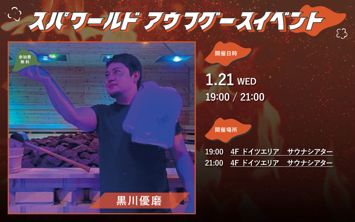 あつ~いイベントとともに、ぜひスパワールドのサウナをどうぞお楽しみください♪