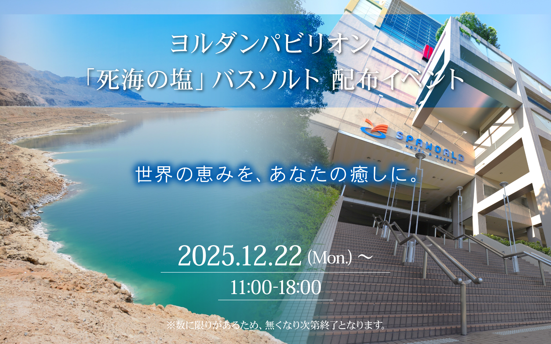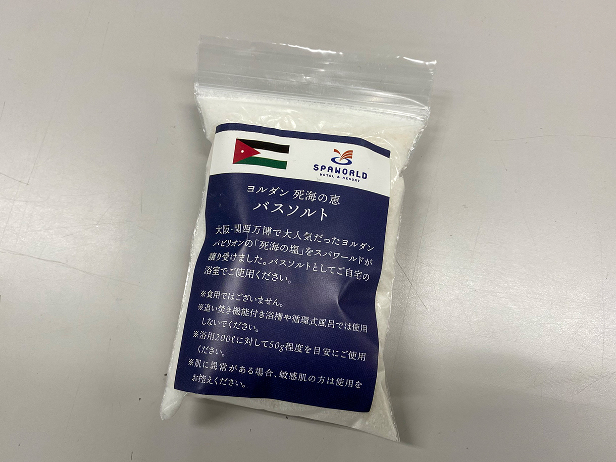 この度スパワールドでは、『大阪・関西万博2025』で大人気だったヨルダンパビリオンの「死海の塩」を譲り受ける運びとなりました。