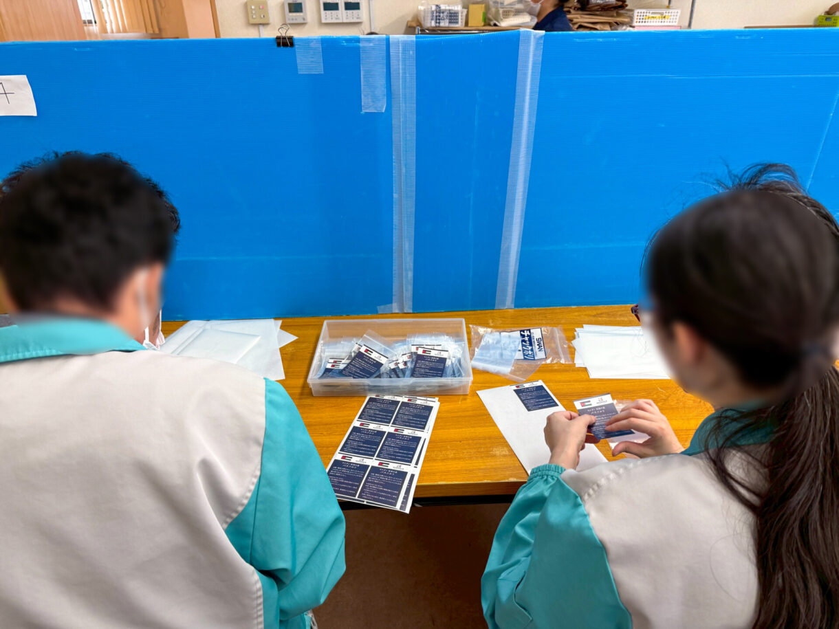 加えて「障害福祉サービス事業所にいたかの里」の皆さまに袋詰め、シールを貼っていただき、スパワールドにご来館のお客さまにご家庭でご使用いただけるバスソルトとして配布いたします。